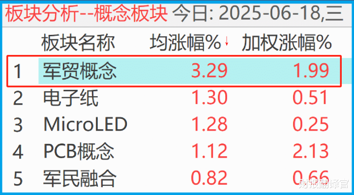 今天,军贸概念板块异军突起。在上午,该板块的平均涨幅就达到了4%,这说明其是近期的热点,我们可以适当关注。