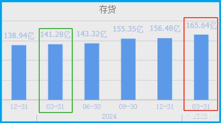 2024年第一季度,公司的存货只有141.28亿元。到了2025年第一季度,这家企业的存货就达到了165.64亿元。这不仅同比增长了7%,还创出了历史新高。